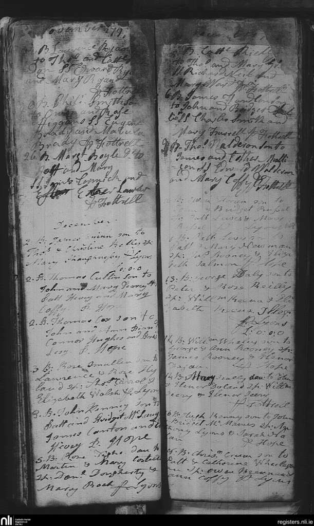 Mullingar; County of Westmeath; Diocese of Meath. Baptisms, Nov. 1797 to Dec. 1797