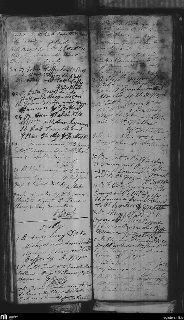 Mullingar; County of Westmeath; Diocese of Meath. Baptisms, June 1798 to July 1798