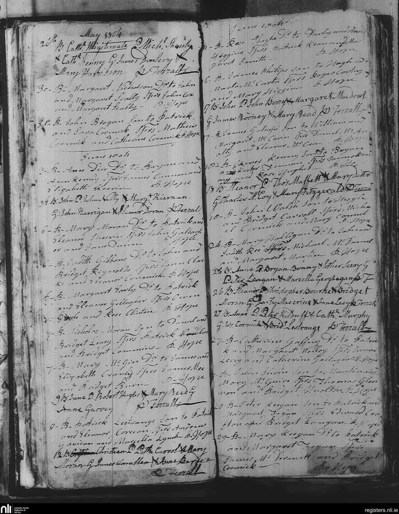 Mullingar; County of Westmeath; Diocese of Meath. Baptisms, May 1804 to June 1804