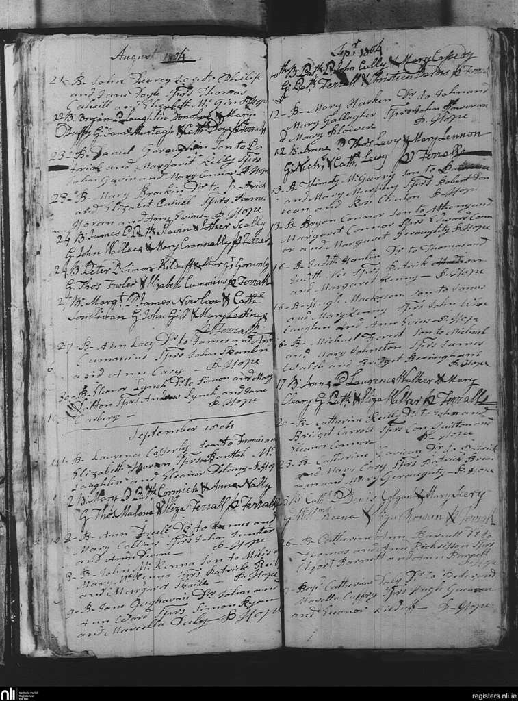 Mullingar; County of Westmeath; Diocese of Meath. Baptisms, Aug. 1804 to Sep. 1804