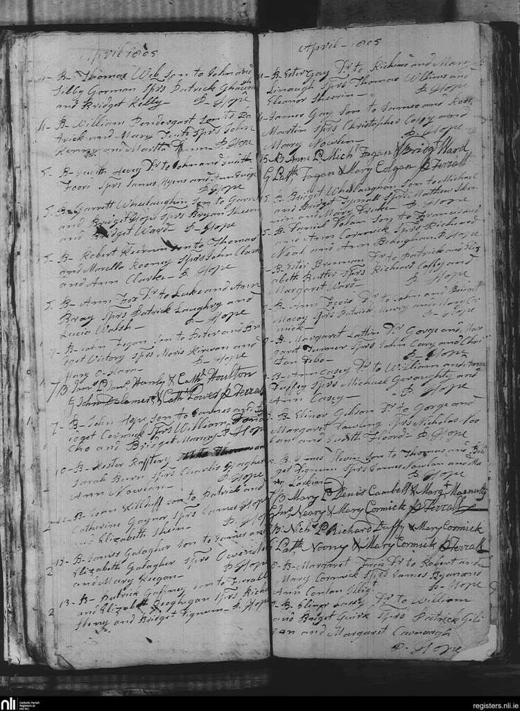 Mullingar; County of Westmeath; Diocese of Meath. Baptisms, Apr. 1805