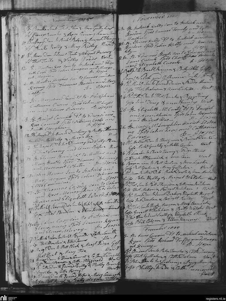 Mullingar; County of Westmeath; Diocese of Meath. Baptisms, Nov. 1805 to Dec. 1805