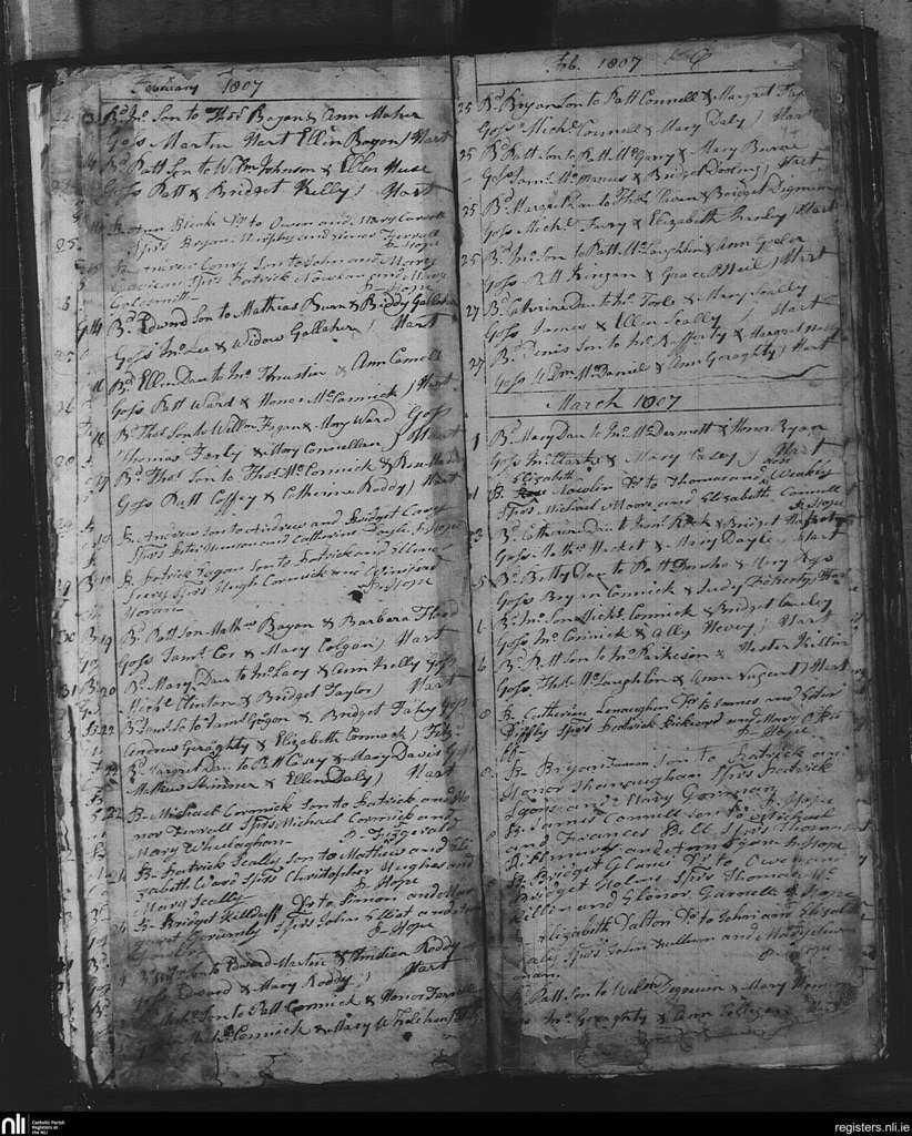 Mullingar; County of Westmeath; Diocese of Meath. Baptisms, Feb. 1807 to Mar. 1807
