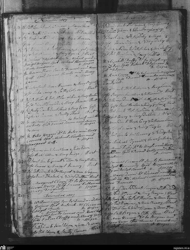 Mullingar; County of Westmeath; Diocese of Meath. Baptisms, Nov. 1807 to Dec. 1807