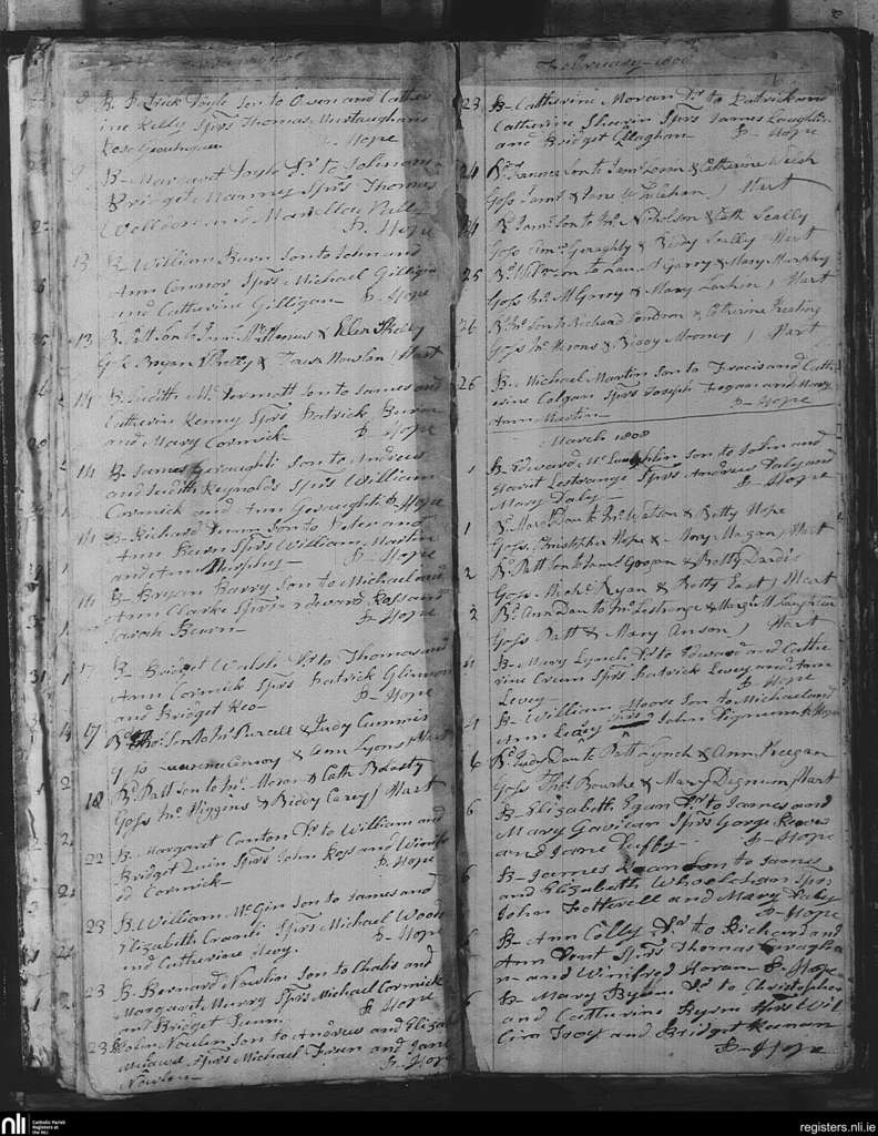 Mullingar; County of Westmeath; Diocese of Meath. Baptisms, Feb. 1808 to Mar. 1808