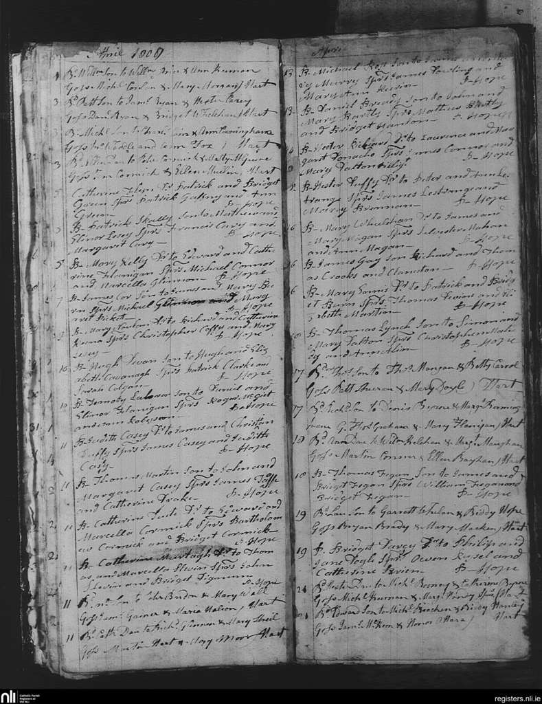 Mullingar; County of Westmeath; Diocese of Meath. Baptisms, Apr. 1808