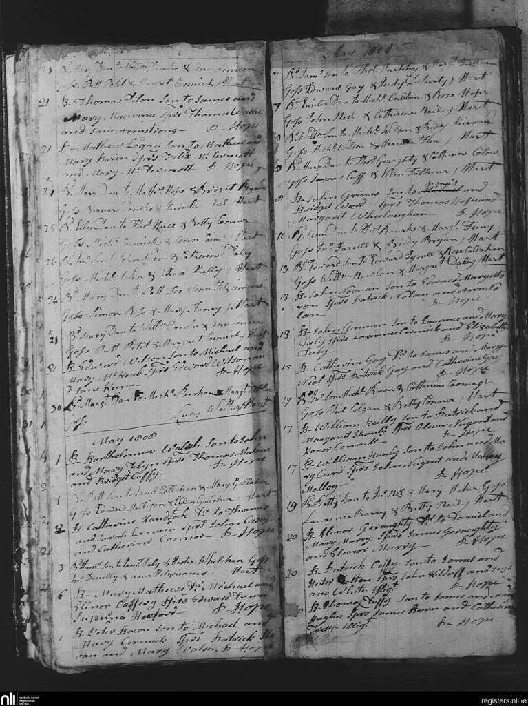 Mullingar; County of Westmeath; Diocese of Meath. Baptisms, Apr. 1808 to May 1808