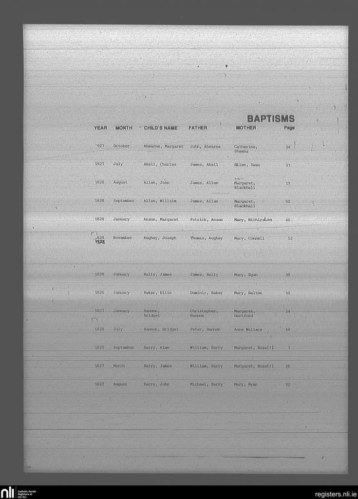 Mullingar; County of Westmeath; Diocese of Meath. Baptisms, Sep. 1825 to Nov. 1828