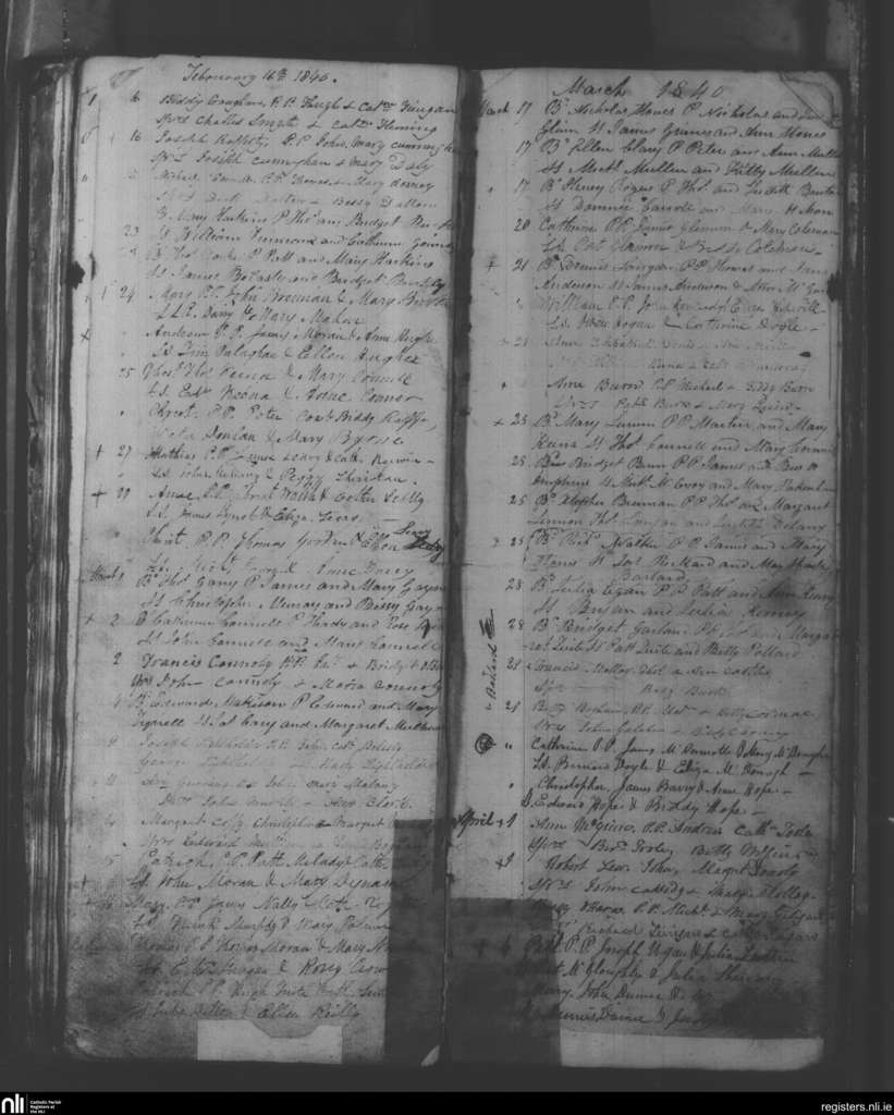 Mullingar; County of Westmeath; Diocese of Meath. Baptisms, Feb. 1840 to Apr. 1840