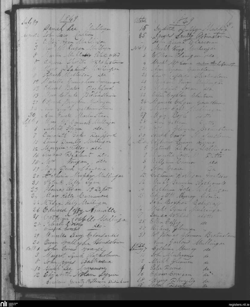 Mullingar; County of Westmeath; Diocese of Meath. Deaths, July 1849 to Jan. 1850