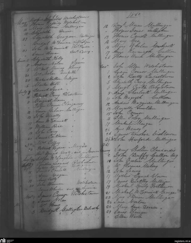 Mullingar; County of Westmeath; Diocese of Meath. Deaths, May 1860 to Jan. 1861
