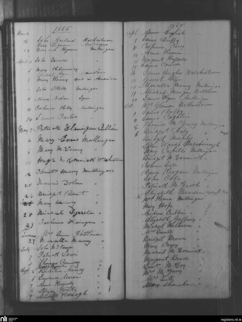 Mullingar; County of Westmeath; Diocese of Meath. Deaths, Mar. 1865 to Oct. 1865