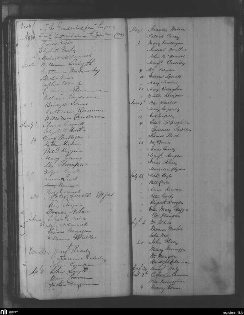Mullingar; County of Westmeath; Diocese of Meath. Deaths, Nov. 1868 to Sep. 1869
