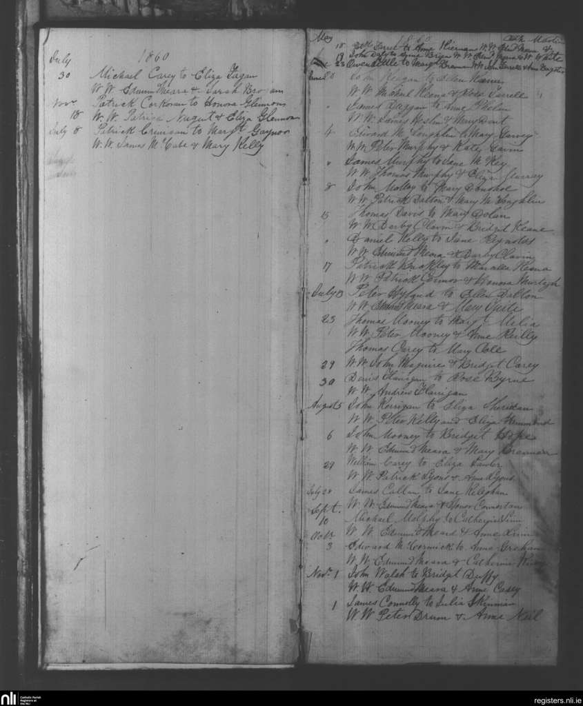 Mullingar; County of Westmeath; Diocese of Meath. Marriages, May 1860 to Nov. 1860