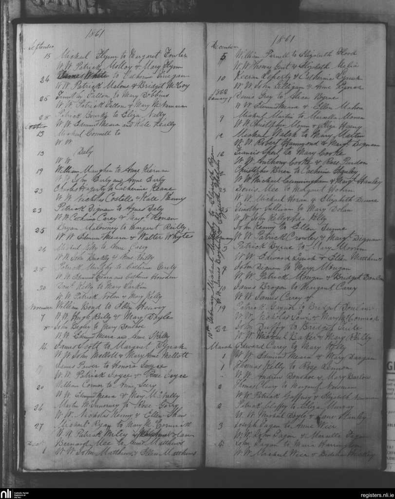 Mullingar; County of Westmeath; Diocese of Meath. Marriages, Sep. 1861 to Mar. 1862