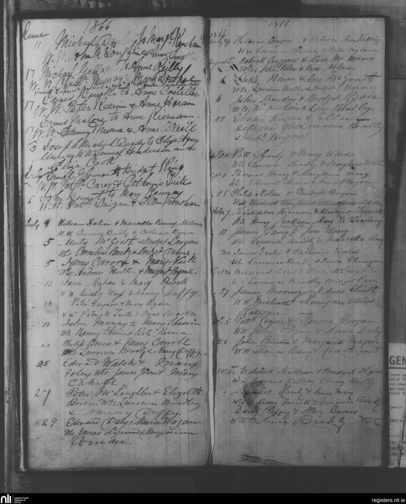 Mullingar; County of Westmeath; Diocese of Meath. Marriages, June 1866 to Oct. 1866