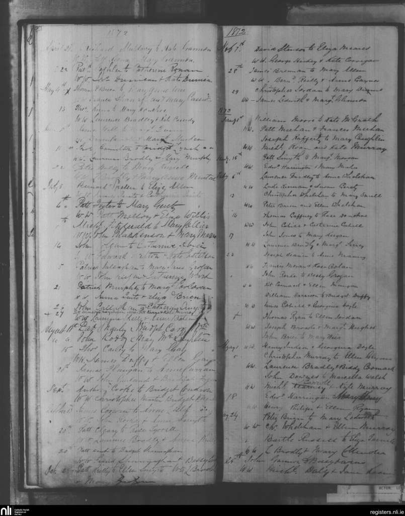 Mullingar; County of Westmeath; Diocese of Meath. Marriages, Apr. 1872 to May 1873