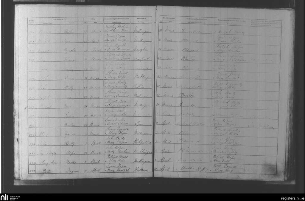 Mullingar; County of Westmeath; Diocese of Meath. Baptisms, Mar. 1864 to Apr. 1864