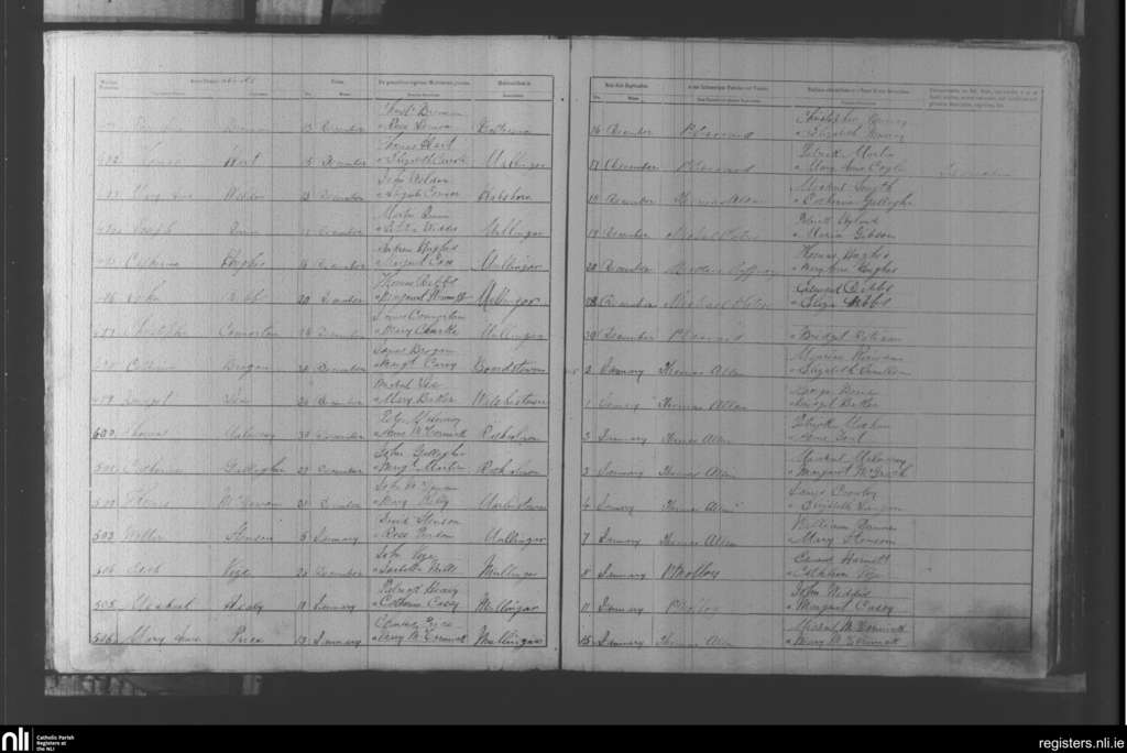 Mullingar; County of Westmeath; Diocese of Meath. Baptisms, Dec. 1864 to Jan. 1865