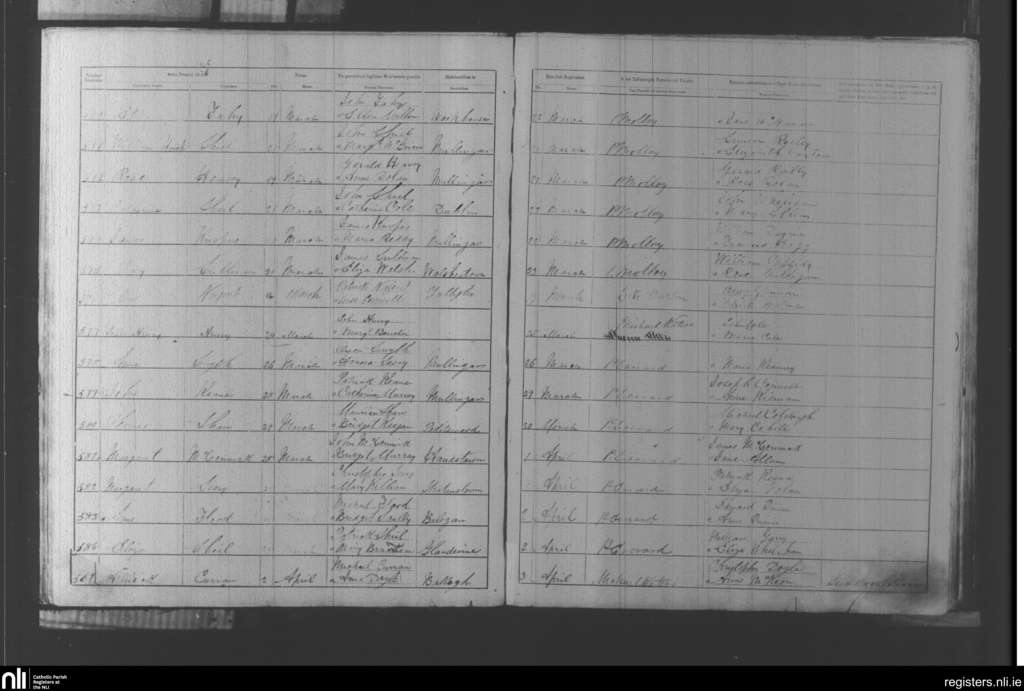 Mullingar; County of Westmeath; Diocese of Meath. Baptisms, Mar. 1865 to Apr. 1865