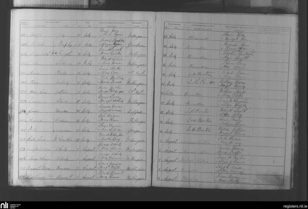 Mullingar; County of Westmeath; Diocese of Meath. Baptisms, July 1865 to Aug. 1865