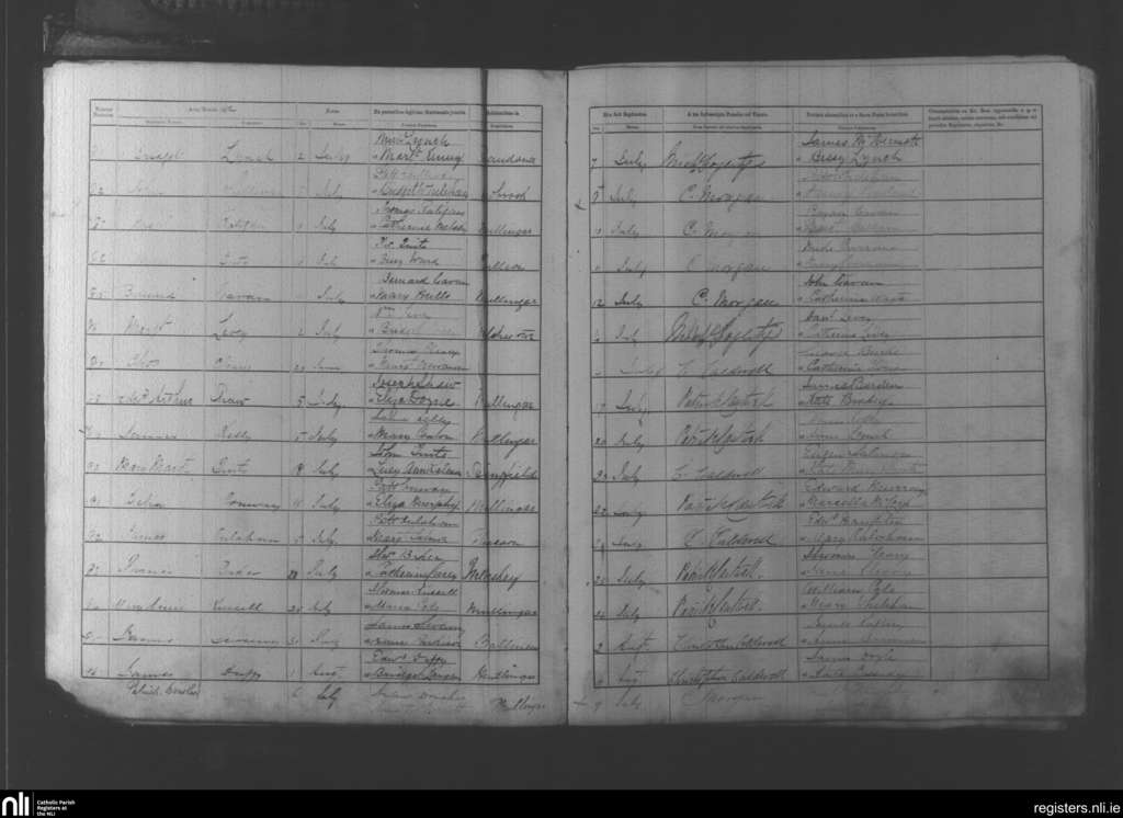 Mullingar; County of Westmeath; Diocese of Meath. Baptisms, July 1872 to Aug. 1872