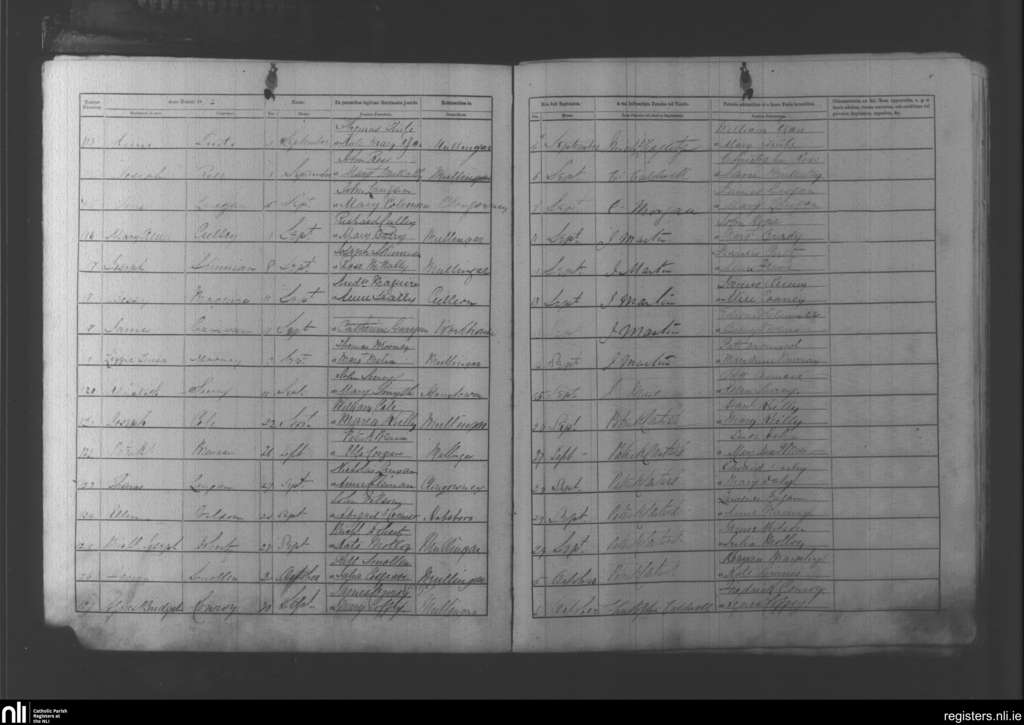 Mullingar; County of Westmeath; Diocese of Meath. Baptisms, Sep. 1872 to Oct. 1872