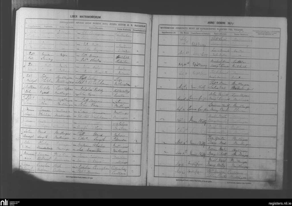 Mullingar; County of Westmeath; Diocese of Meath. Marriages, July 1879 to Nov. 1879