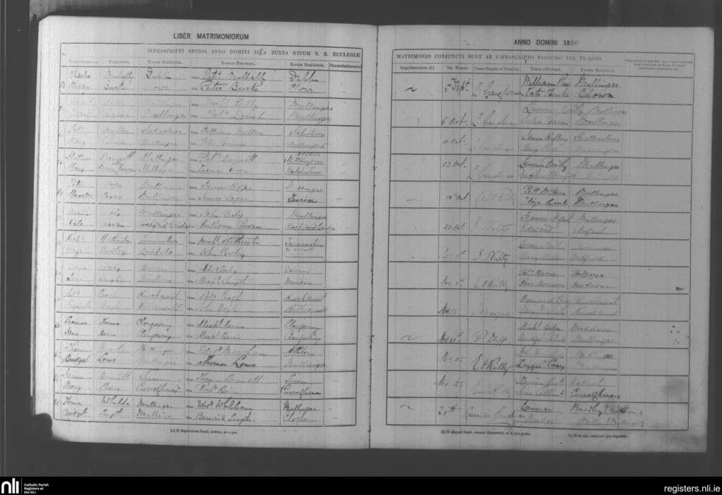 Mullingar; County of Westmeath; Diocese of Meath. Marriages, Sep. 1880 to Nov. 1880