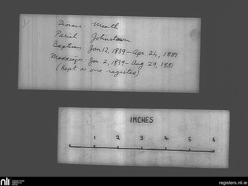 Johnstown; County of Meath; Diocese of Meath. Baptisms, Marriages