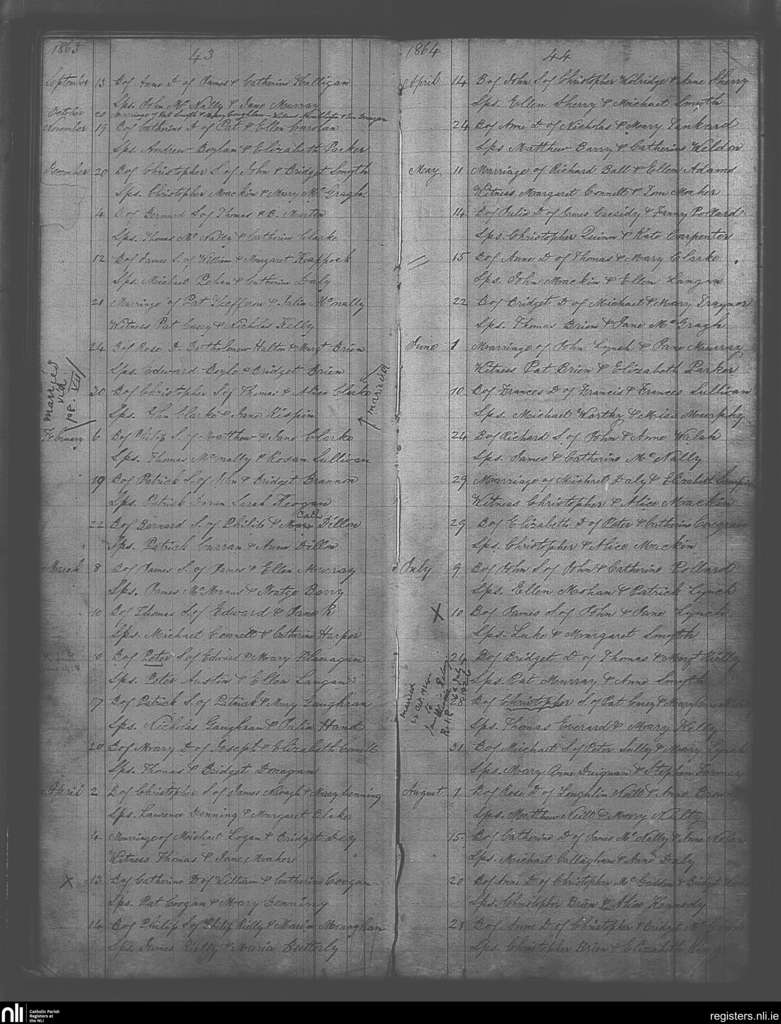 Johnstown; County of Meath; Diocese of Meath. Baptisms, Marriages, Sep. 1863 to Aug. 1864