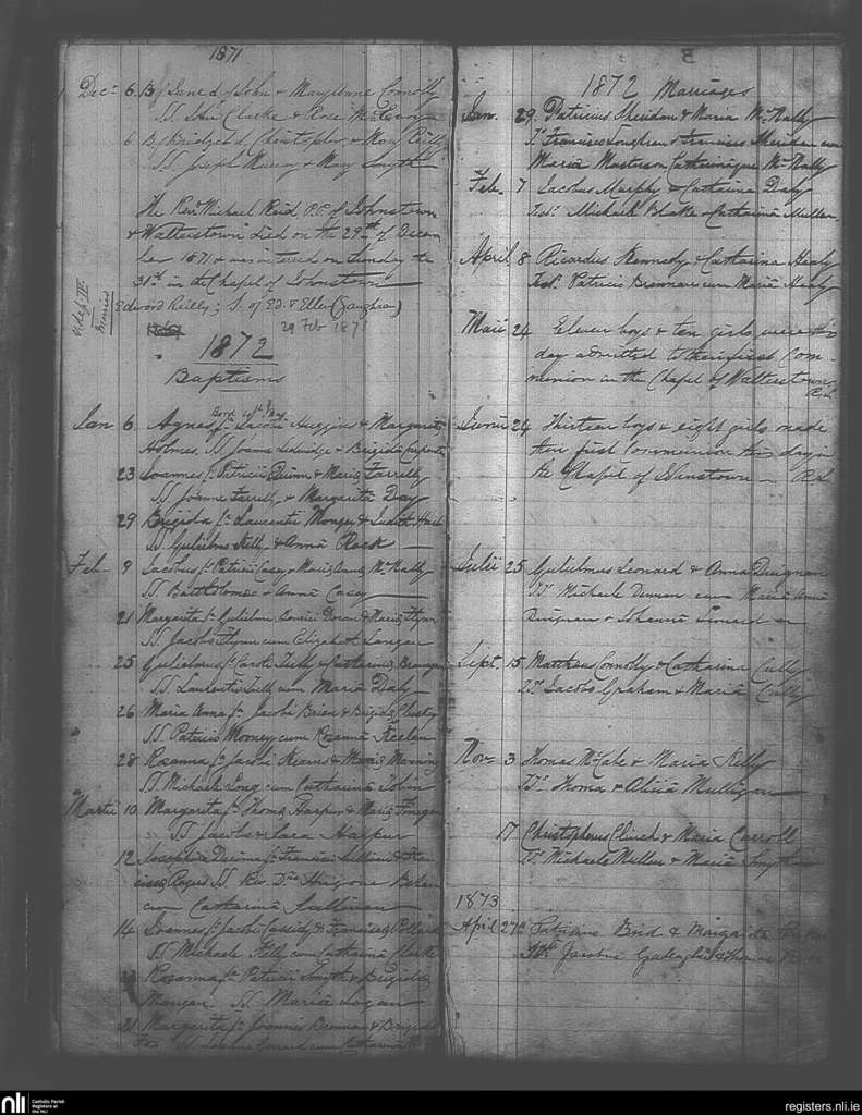 Johnstown; County of Meath; Diocese of Meath. Baptisms, Marriages, Dec. 1871 to Apr. 1873