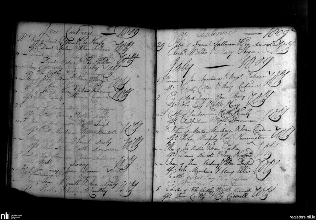 Schull East; County of Cork; Diocese of Cork and Ross. Baptisms, June 1809 to July 1809