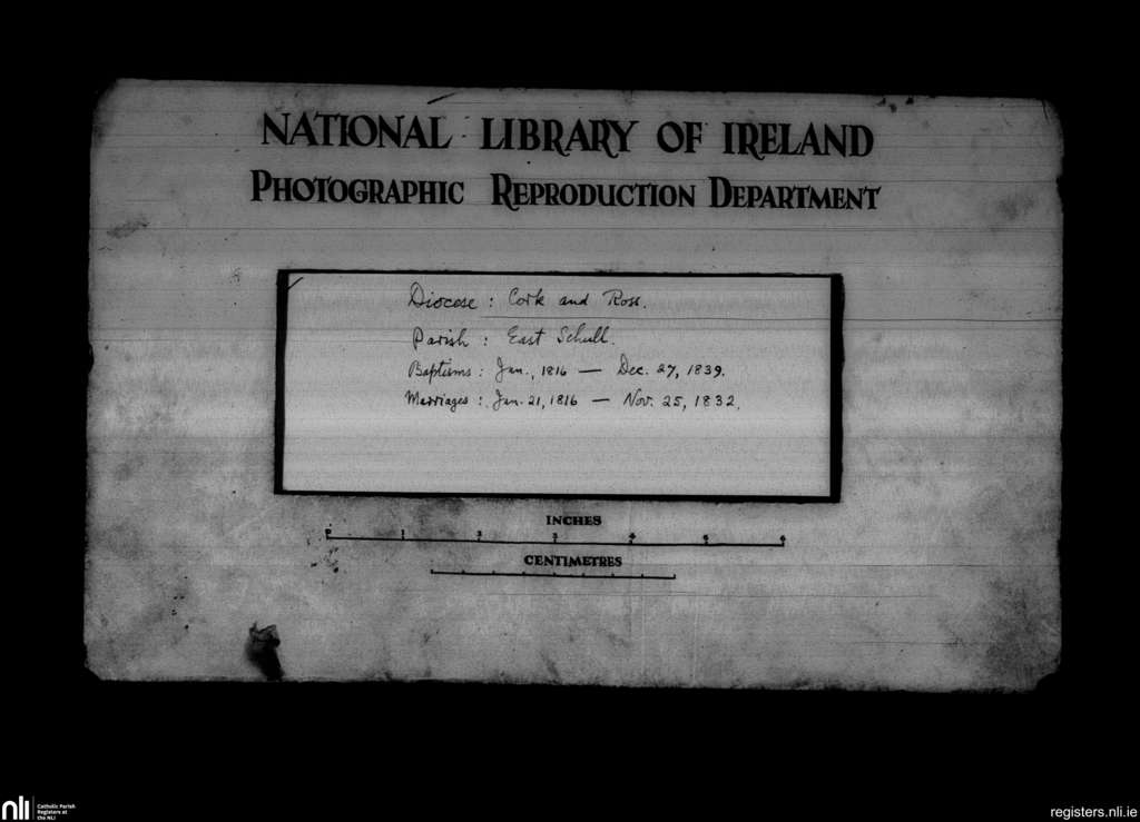 Schull East; County of Cork; Diocese of Cork and Ross. Baptisms, Marriages