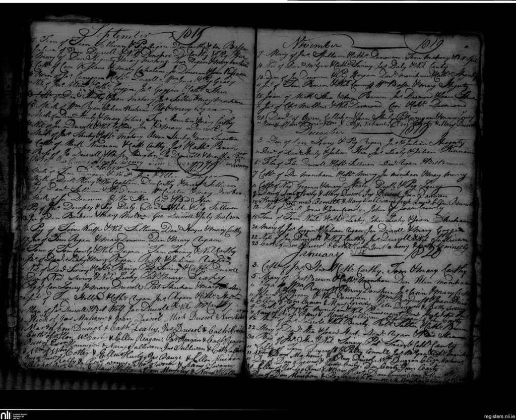 Schull East; County of Cork; Diocese of Cork and Ross. Baptisms, Sep. 1819 to Jan. 1820