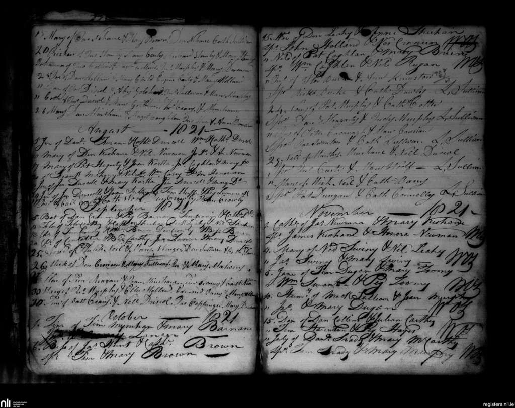 Schull East; County of Cork; Diocese of Cork and Ross. Baptisms, July 1821 to Nov. 1821