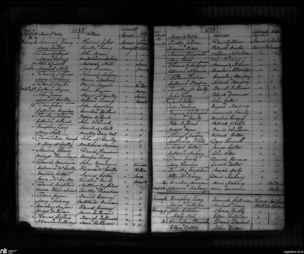 Schull East; County of Cork; Diocese of Cork and Ross. Marriages, Jan. 1833 to Feb. 1833