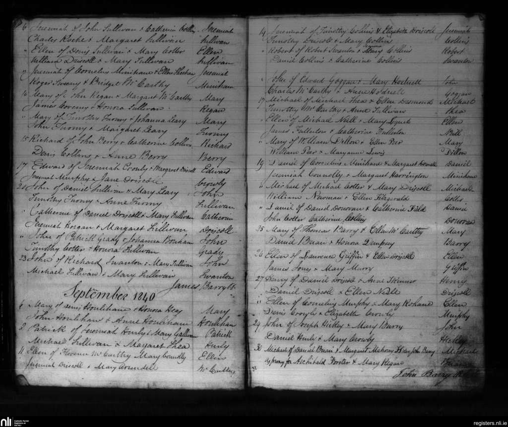 Schull East; County of Cork; Diocese of Cork and Ross. Baptisms, Sep. 1840