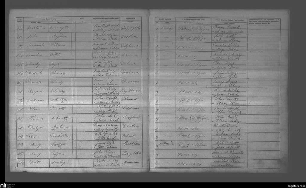 Schull East; County of Cork; Diocese of Cork and Ross. Baptisms, Jan. 1873