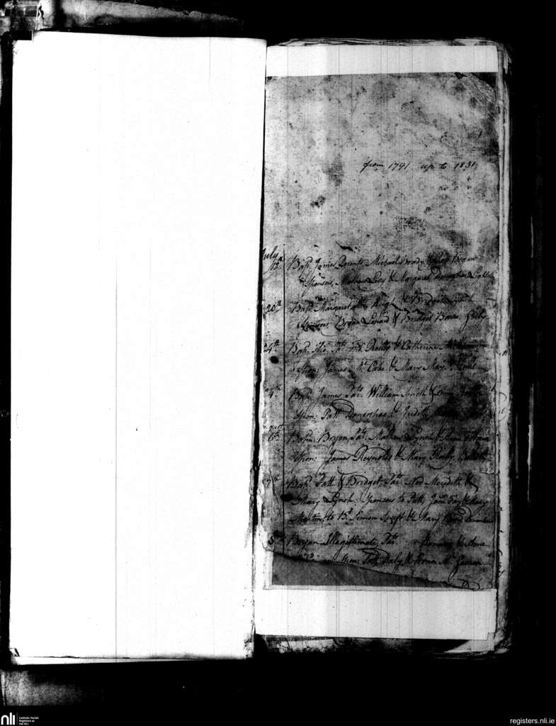 Kells; County of Meath; Diocese of Meath. Baptisms, July 1791 to Sep. 1791