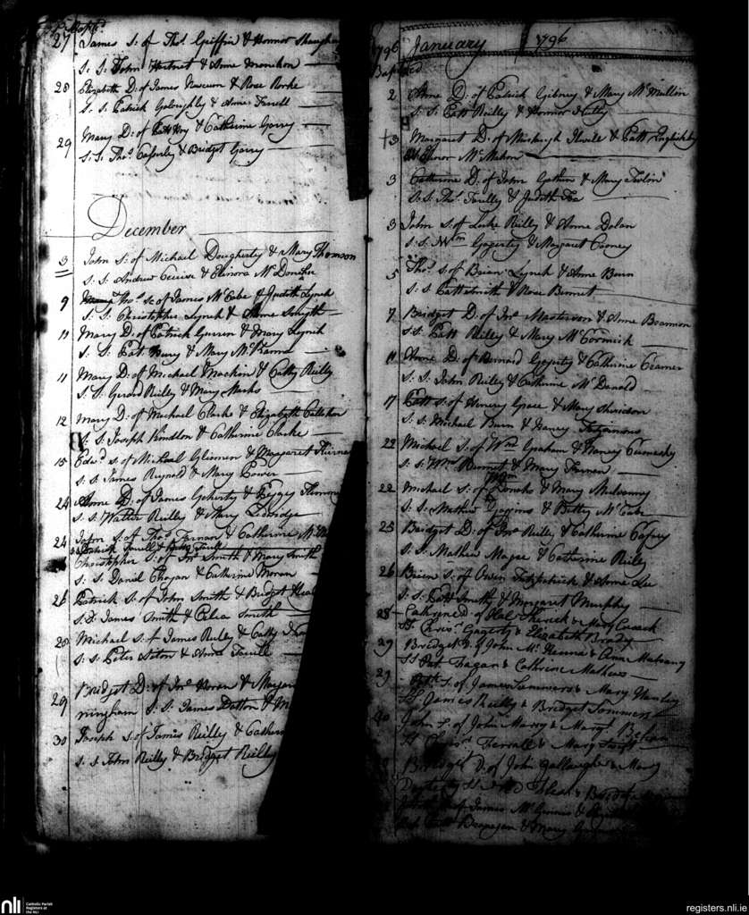 Kells; County of Meath; Diocese of Meath. Baptisms, Nov. 1795 to Jan. 1796