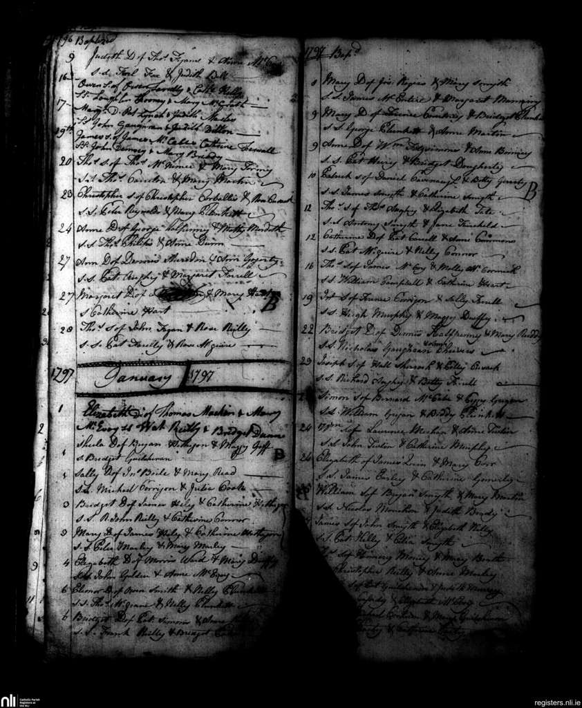 Kells; County of Meath; Diocese of Meath. Baptisms, Dec. 1796 to Jan. 1797