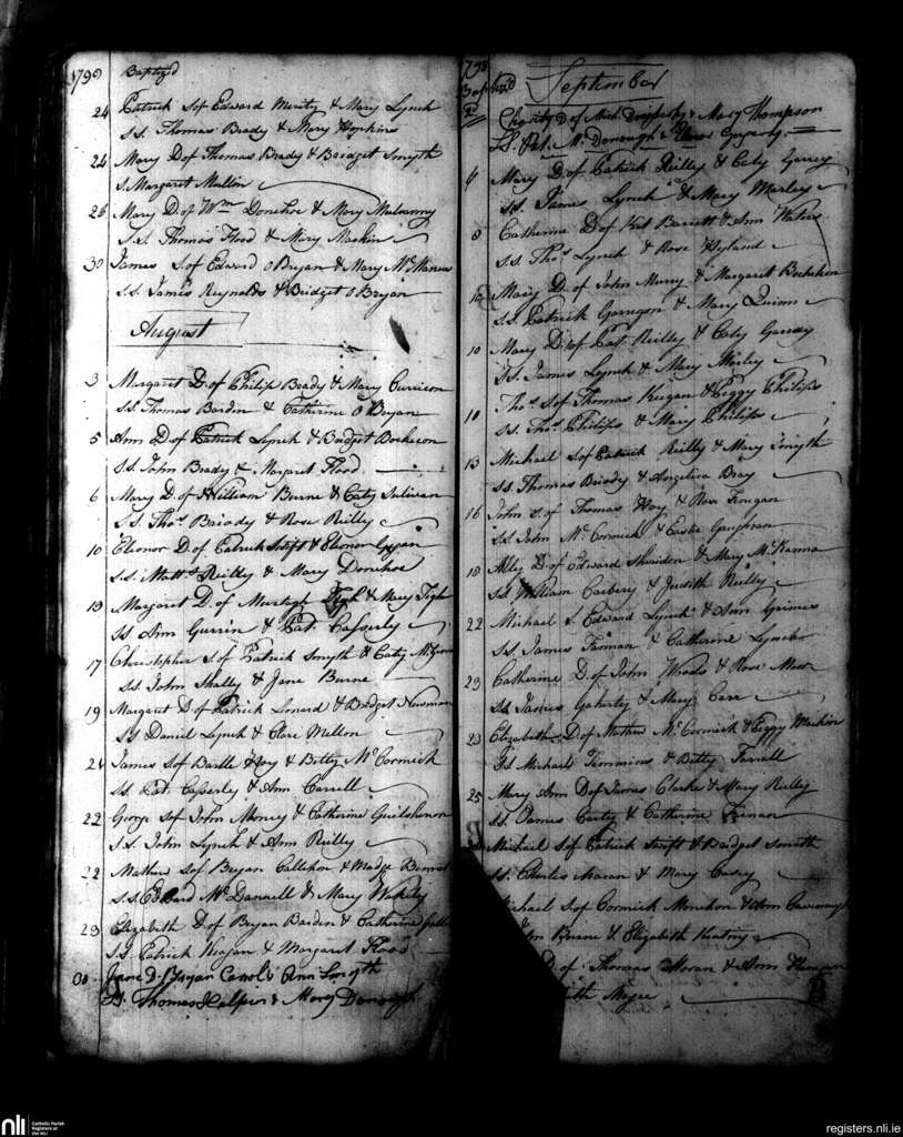 Kells; County of Meath; Diocese of Meath. Baptisms, July 1798 to Sep. 1798