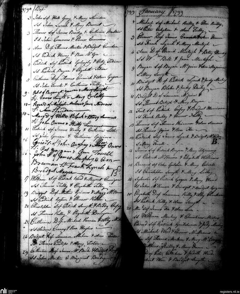 Kells; County of Meath; Diocese of Meath. Baptisms, Dec. 1798 to Jan. 1799