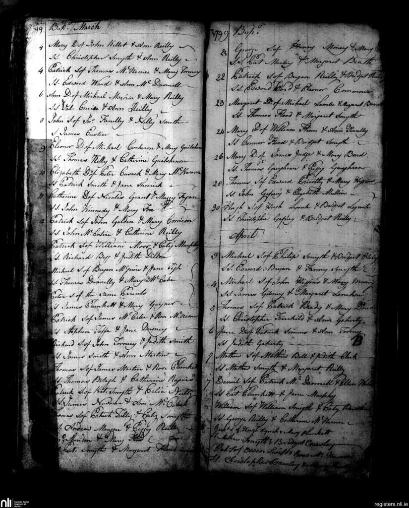 Kells; County of Meath; Diocese of Meath. Baptisms, Mar. 1799 to Apr. 1799