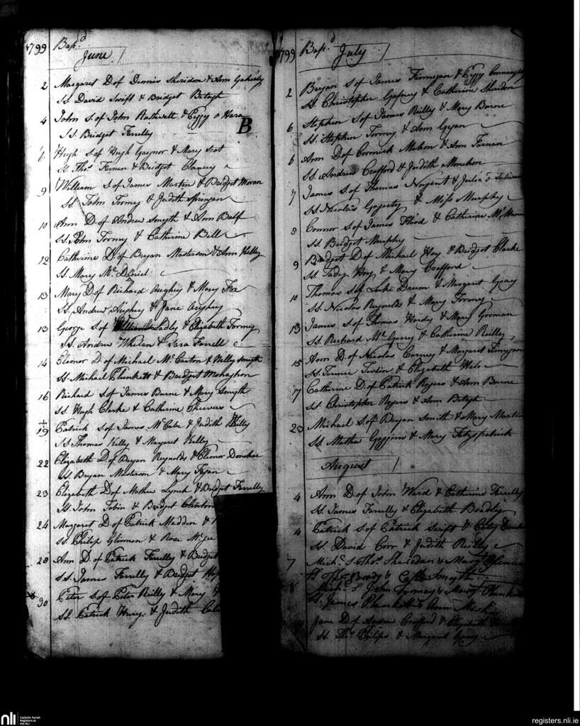 Kells; County of Meath; Diocese of Meath. Baptisms, June 1799 to Aug. 1799