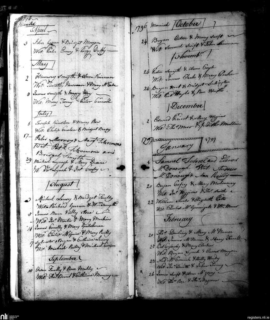 Kells; County of Meath; Diocese of Meath. Marriages, Apr. 1796 to Feb. 1797