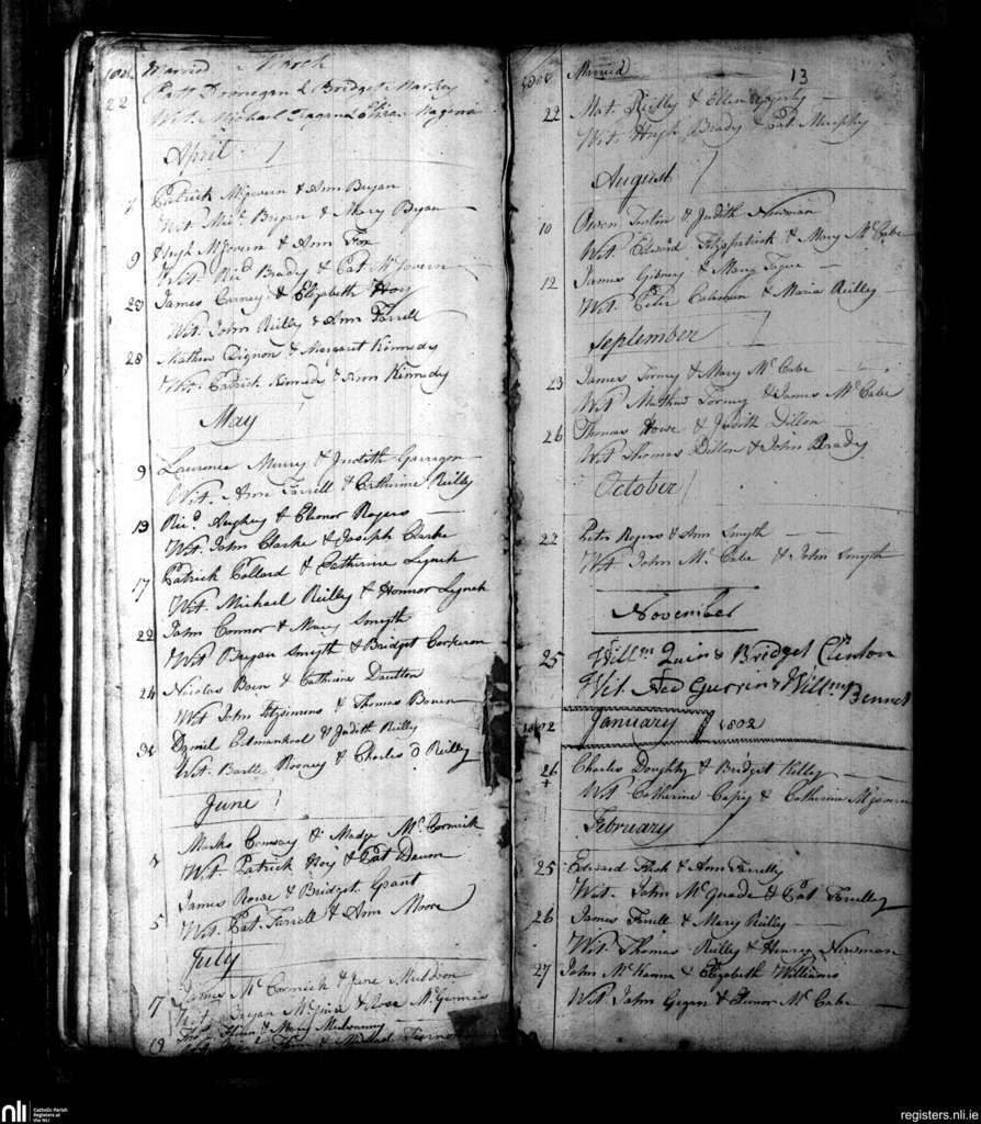 Kells; County of Meath; Diocese of Meath. Marriages, Mar. 1801 to Feb. 1802