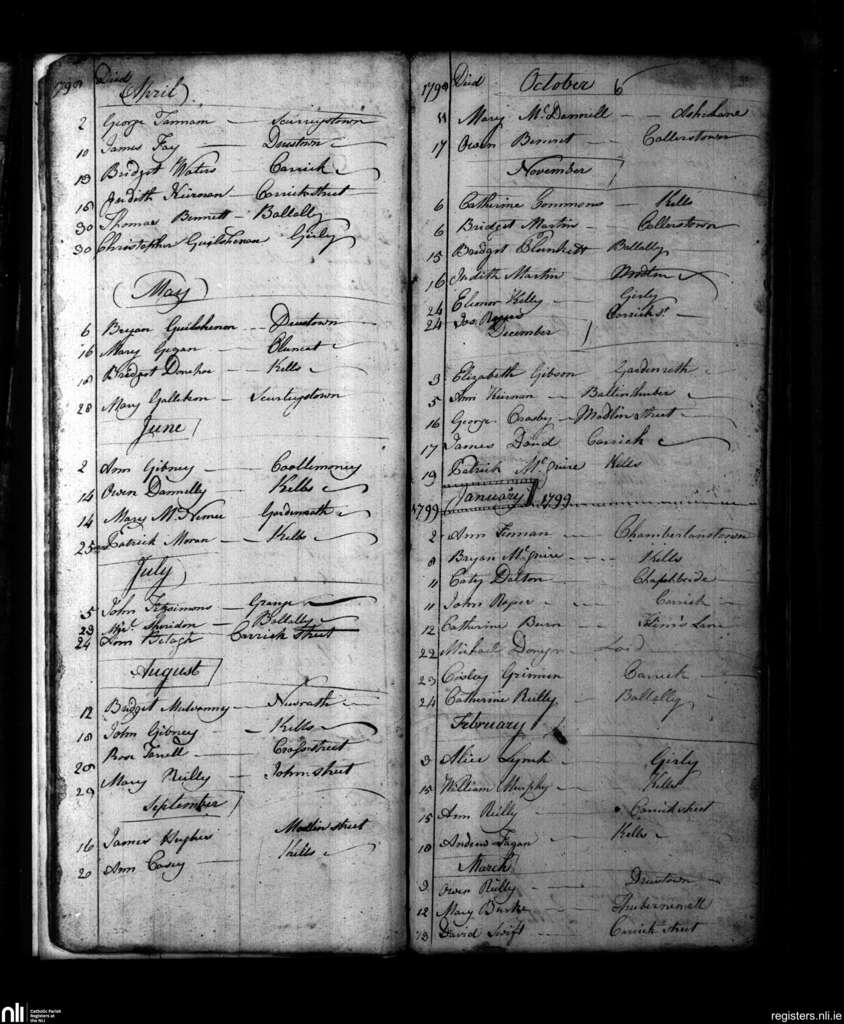 Kells; County of Meath; Diocese of Meath. Deaths, Apr. 1798 to Mar. 1799