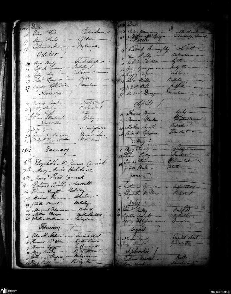 Kells; County of Meath; Diocese of Meath. Deaths, Sep. 1801 to Sep. 1802